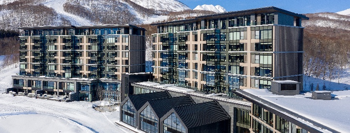 パークハイアット ニセコ HANAZONOは、ニセコ・アンヌプリの北東側に位置するHANAZONOリゾートの中心にあり、全100室の客室と60室以上のレジデンスを備えた大規模かつ高級感あふれる施設です。